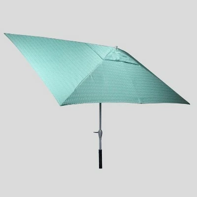 Shade your patio with the help of the Rectangular City Geo Patio Umbrella from Project 62™. The rectangular umbrella can be tilted to move with the sun and offer you better coverage, and it features green-and-white geo print for added visual interest. You can relax beneath the umbrella and enjoy time with family and friends without getting overheated thanks to the airflow vent located atop the umbrella, and it’s made with water and fade-resistant DuraSeason Fabric™ to help it last through all four seasons.