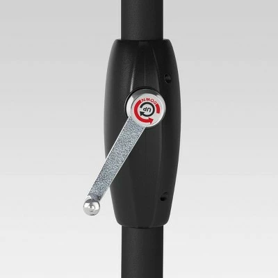 Refresh the look of your gorgeous outdoor entertaining area with this DuraSeason Fabric™ Patio Umbrella from Threshold™. This UV-resistant patio umbrella features a solid-color design with a black pole to create a classic look you’ll appreciate. Plus, it has a crank that lets you easily open the patio umbrella to add shade to a chair or table, and to close it when you want to catch some sun. Whether you use it during outdoor meals or relaxing conversations with friends, it will provide plenty of shade to you and your guests while retaining its color and beauty.