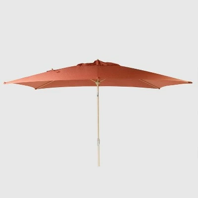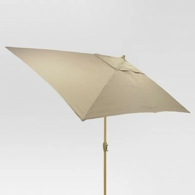 Upgrade your patio arrangement with this Light Wood Pole Patio Umbrella from Threshold™. This beautiful patio umbrella in a soothing tone makes an essential addition to your outdoor space. The solid pole in neutral beige provides sturdy support, while the weather-resistant canopy makes it ideal for outdoor use. Complete with a push-button tilt function for easy use and a crank lift opening mechanism, this patio umbrella lets you enjoy your time outdoors with ease. Whether you use it during outdoor meals or relaxing conversations with friends, it will provide plenty of shade to you and your guests.