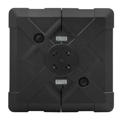 Patio cantilever umbrella base sand/water filled square umbrella stand with wheels. When fully filled is about 220 lbs. With 2 large-sized water injection ports and 2 water drain outlets, Base is easy to be filled and drained. There are 4 wheels at the bottom of this base weight, which can help you move effortlessly in any area of the backyard.