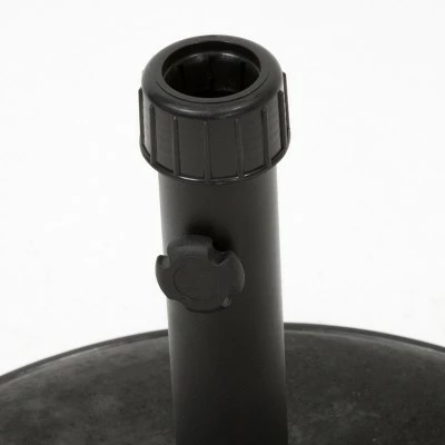 The Christopher Knight Home 33 lb Patio Umbrella Base ensures that your umbrella will remain securely intact with style and practicality. Built out of solid steel and concrete, the 33 pound base can accommodate an umbrella as large as 9 feet. The base rod features a tightening knob to easily secure any sized umbrella pole. Place this Christopher Knight Home 33 lb Patio Umbrella Base under your dining set to provide a shady and relaxing outdoor dining experience with your favorite outdoor umbrella.