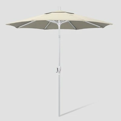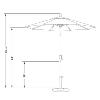 Protect your guests from the elements without monopolizing space with the Aluminum Push-Tilt Patio Umbrella from California Umbrella. This beautiful market umbrella features heavy-duty rib reinforcement, a fabric canopy that resists mold and mildew, and a rust-resistant aluminum hardware design. Use the easy-open crank system to raise the canopy and the push-button tilt mechanism to easily direct it into the perfect position for you and your guests.