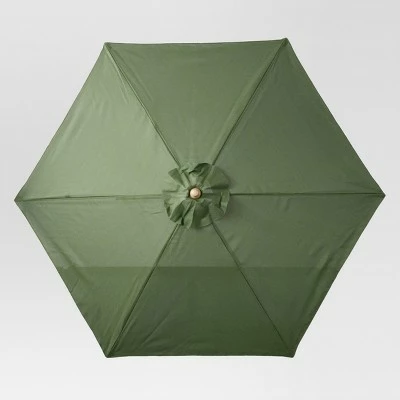From days spent poolside to lounging around the patio with friends and family, the Round Sling Patio Umbrella from Threshold™ creates the perfect shady nook to relax and enjoy the outdoors. It’s easy to alter both the height and angle with a crank lift and push-button tilt adjustment, allowing you to find a combination that’s just right for creating a soothing outdoor oasis. The faux-wood pole adds tropical-cabana appeal, and the UV- and fade-resistant umbrella stands up to year-round use. Whether you’re hosting a neighborhood barbecue or enjoying a patio breakfast on a Sunday morning, you’ll have the comfort you need on the sunniest of days with this outdoor patio umbrella.