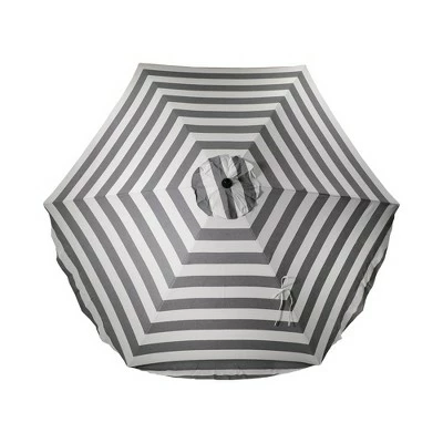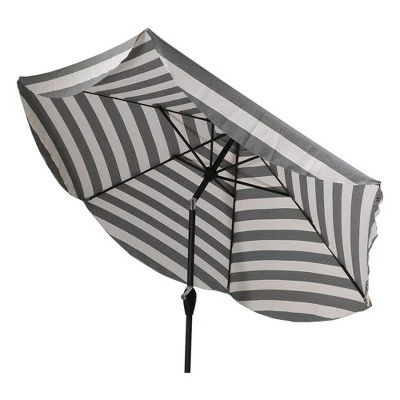 Add some shade to your outdoor table with this Black Cabana Round Scalloped Patio Umbrella DuraSeason Fabric from Threshold™. This outdoor umbrella is a must-have addition to your patio, deck, backyard or garden decor. Made of water- and fade-resistant fabric for lasting outdoor use, it features a black and white striped pattern, along with scalloped edges for added style. The round canopy helps you stay shaded from the sun, while a metal frame offers a sleek foundation. Plus, it’s equipped with a tilt function to position the umbrella at your desired angle, along with a built-in crank on the pole that makes it easy to open and close the umbrella.
