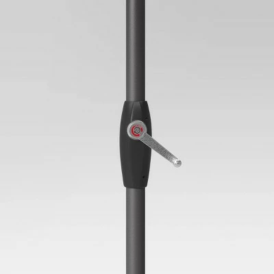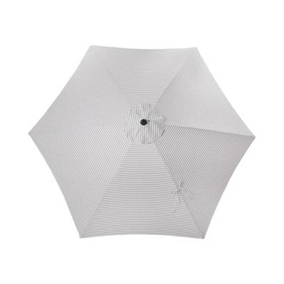 Keep your outdoor area cool and shaded with Gray with this Crestwood Stripe Round Patio Umbrella DuraSeason Fabric from Threshold™. This outdoor umbrella is a must-have addition to your patio, deck, backyard or garden space. Made of water- and fade-resistant fabric for durable outdoor use, it features repeated gray and white stripes for a casual-contemporary look. The circular canopy helps you stay shaded from the sun, while a metal frame offers a sleek foundation. Plus, it’s equipped with a tilt function to position the umbrella at your desired angle, along with a built-in crank on the pole that makes it easy to open and close the umbrella.