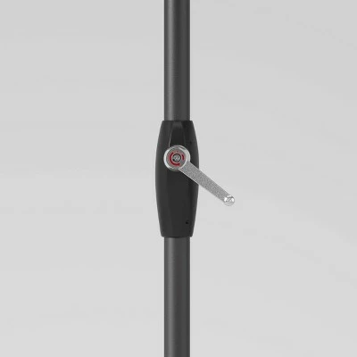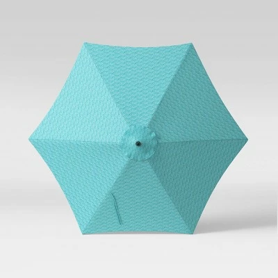Make the best use of your outdoor space on sunny days with this Aqua Sugar Chevron Round Patio Umbrella DuraSeason Fabric from Threshold™. This outdoor umbrella makes a must-have addition to your patio, deck, backyard or garden decor. Made of water- and fade-resistant fabric for durable outdoor use, it features a white chevron pattern on an aqua blue base for a cool and attractive look. The circular canopy helps you stay shaded from the sun, while a metal frame offers a sleek foundation. Plus, it’s equipped with a tilt function to position the umbrella at your desired angle, along with a built-in crank on the pole that makes it easy to open and close the umbrella.