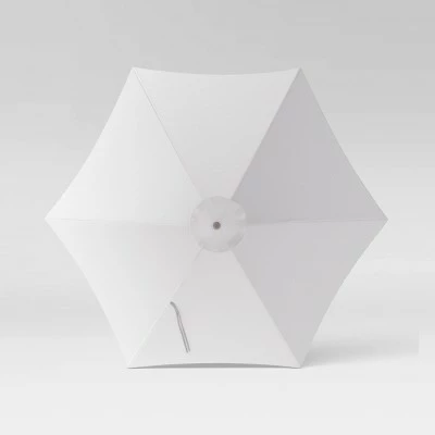 Bring shade to your outdoor space with this Navy Veranda Stripe Round Patio Umbrella DuraSeason Fabric from Thresholdâ„¢. This outdoor umbrella makes a perfect addition to your patio, deck, backyard or garden decor. Made of water- and fade-resistant fabric for outdoor use, it features a thin navy striped pattern to add a casual-contemporary look. The round canopy helps you stay shaded from the sun, while a metal frame offers support. Plus, it’s equipped with a tilt function to position the umbrella at your desired angle, along with a built-in crank on the pole that makes it easy to open and close the umbrella.