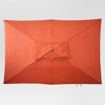 Stay cool in style with this Rectangular Patio Umbrella from Threshold™ the next time you’re outside. The solid patio umbrella has color options so you can stick with your current color scheme or add a fun complementary color for extra style points. The faux-wood pole comes in a light wood that adds charm to your cozy outdoor space, and make sure you take advantage of the tilting feature on this crank patio umbrella that will help you stay in the shade as the sun moves. A tilting patio umbrella is perfect for your next outdoor gathering and something the whole family will appreciate when they want to relax.