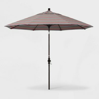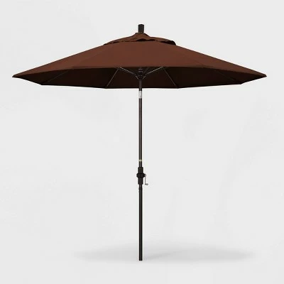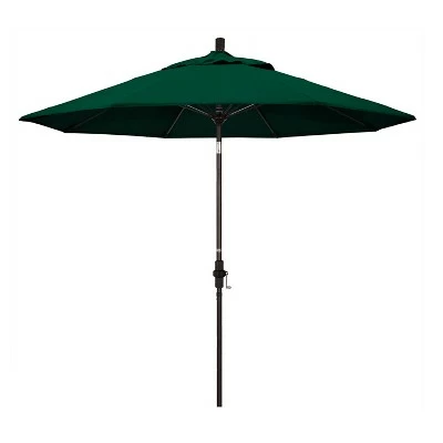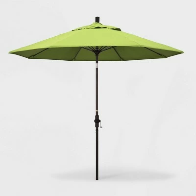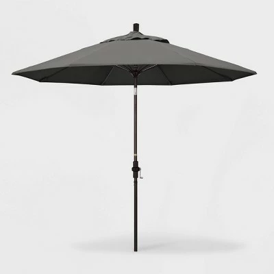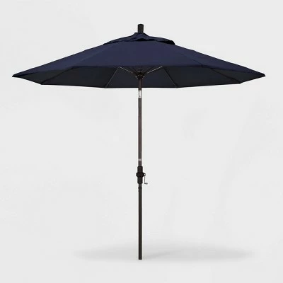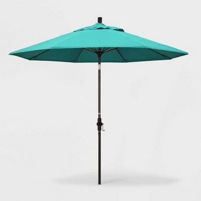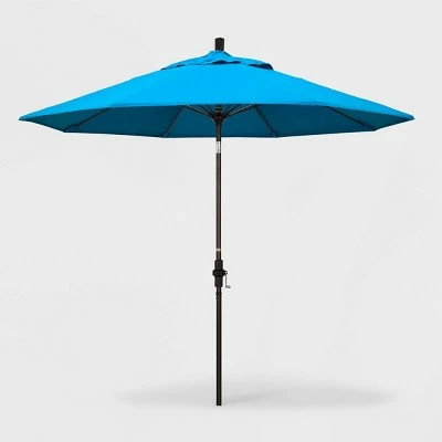 The Aluminum Collar-Tilt Crank Sunbrella Patio Umbrella from California Umbrella will add shade and color to your outdoor space. The blue patio umbrella will completely transform your outdoor space while providing plenty of shade, and can be easily adjusted with a push-button tilt mechanism. The weatherproof umbrella features a matte-black aluminum post, fiberglass ribs and acrylic shade to help you relax in comfort. Sunbrella is a 100% acrylic fabric that is water resistant, spill resistant, and fade resistant. Ideal for outdoor use, Sunbrella fabric is UV treated for high-quality fade resistance.