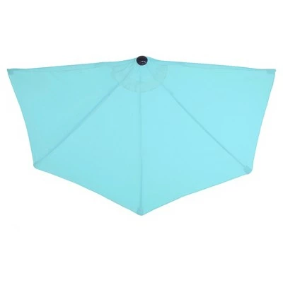 - Semicircular 9ft polyester shade canopy is designed to easily fit against walls or windows