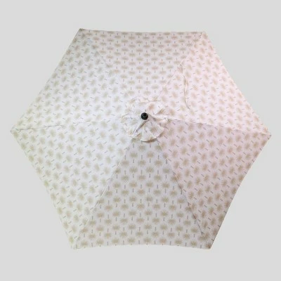 Add a hint of tropical style to your patio or deck with the 9′ Round Palm Print Patio Umbrella from Threshold™. With allover palm tree print on a white background, this crank-tilt umbrella adds a refreshing accent to any outdoor space. The collar tilt allows you to create the perfect shady spot on your patio or deck or in your yard — just add an umbrella base and you’re ready to enjoy the outdoors in comfortable style. The fade-resistant fabric helps the umbrella retain its look through all four seasons, and it comes with a 1-year limited warranty to give you extra peace of mind.