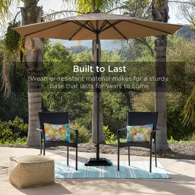 - SECURE AND DURABLE: Heavy-duty, 26-pound build and square design securely holds patio umbrellas in windy weather