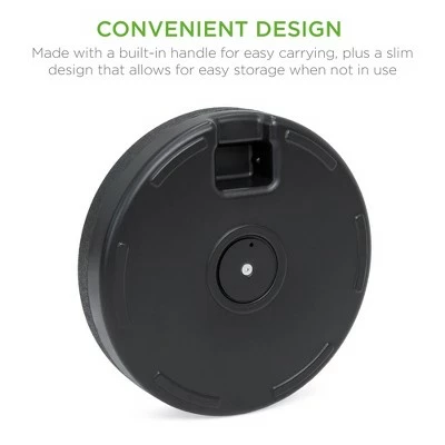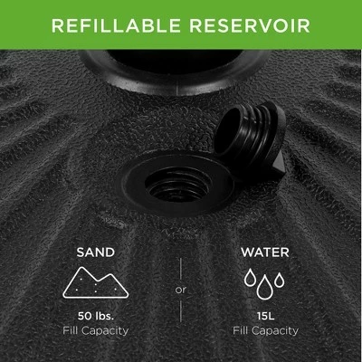 Make an addition to your yard like no other! This umbrella stand combines style and function in one attractive package. The refillable reservoir features a 50 lbs fill capacity for sand or a 15L fill capacity for water. Built tough for a sturdy base that lasts for years to come, the heavy-duty plastic is a weather-resistant, durable material that lends itself to outdoor essentials. This stand is the perfect fit for most umbrellas and boasts a pole diameter of 1.9in. The sturdy base is built to accommodate standard umbrellas ranging from 6-10 feet without tipping over. The utility doesn’t stop with durability; this convenient design is made with a built-in handle for easy carrying, plus a slim design that allows for easy storage when not in use. Lastly, this base includes a stylish design. It is designed with attractive indentations to add a hint of style to any setting.