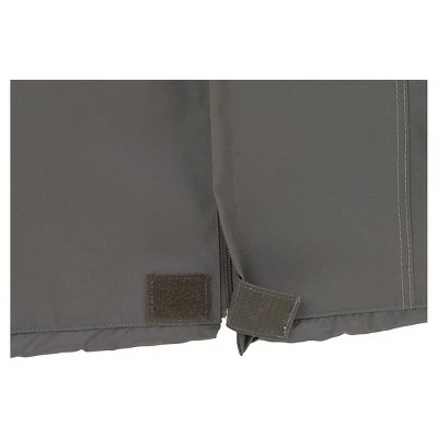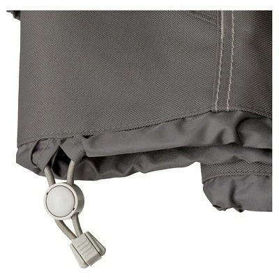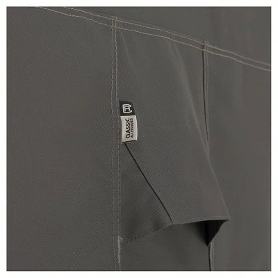 The Ravenna umbrella cover from Classic Accessories combines a striking style with durability, fade-resistance and convenient features. Zippered side makes covering and uncovering your umbrella easy. Double-stitched seams add strength and a stylish accent. Structured vents stay open to prevent wind lofting and mildew and are lined with mesh barriers. Waterproof backing keeps your umbrella dry while the elastic hem cord moves easily through a special channel for a snug fit. A custom-colored buckle will keep your cover secure in any weather. Striped webbing adds an attractive accent and is unique to the Ravenna collection. The Ravenna umbrella covers add style to your patio and will protect for years. 4-Year replacement warranty through manufacturer.Patent pending.