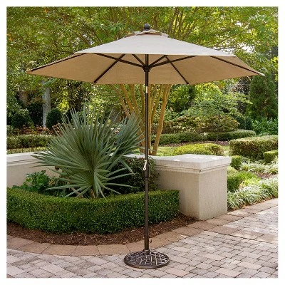 Simple, classic and beautiful, the 9-Ft. Table Umbrella for the Concord Outdoor Dining Collection will provide stylish shade for your guests for years to come. Boasting a sleek design and premium rust-proof materials, this phenomenal umbrella is designed to resist wear from weather conditions to remain vibrant and gorgeous for years. With an impressive 9-ft. canopy, this umbrella is ideal for keeping your outdoor dining guests cool and comfortable. A crank lever is included to ensure easy set-up and take-down and the umbrella tilts easily you your guests will never have to be left out of the shade. Get yours to complete your Cambridge Concord Dining Collection.