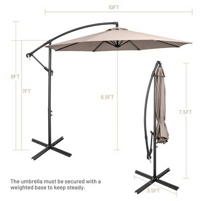 - Perfect 10FT Patio Umbrella: This patio offset umbrella measuring 10FT in diameter can cover two sofas and a table, and you will not feel crowded when spending time under its large shade and enjoying leisure time it brings you in your outdoor activities.