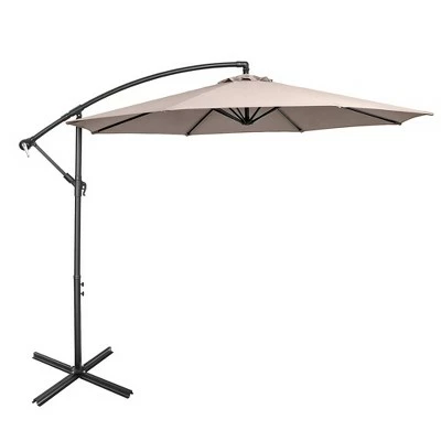 Our patio umbrella is perfect for your garden and you can enjoy leisure time with friends and family ! . Selected metal frame and designed cross base assure the stability of our outdoor umbrella. It is worth noting that a weighted base( not included) is needed to keep our umbrella stable. 8 iron ribs ensures stability of the patio umbrella.Made of polyester ,the umbrella surface is water resistant and fade resistant for long time use. you don’t have to worry about the assembly as we offer clear instruction and complete hardware. This patio umbrella will be your perfect companion during your outdoor time. Specification: Color: GreyBrownBeigeNavy BlueOrangeClaret. Material: Iron, Polyester Fabric. Overall Dimension: 10’ x 8’ (L x H) . Net Weight: 26lbs. Rib Number: 8. Cross Base Dimension: 39.5” x 39.5” (L x W) . . Package includes: . 1 x Patio Umbrella. 1 x User Guide.