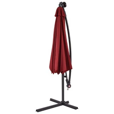 This Is Our 10ft Hanging Offset Umbrella, Sun Tent, Rain Shelter, And More All In One, The Parasol Gives You Instant Portable Protection From The Elements Regardless Of Your Activity. The Beach Umbrella Sets Up In Just Three Seconds. As A Result, You Do not Have To Deal With Finicky Stakes Or Willowy Tarps Should A Rainstorm Roll In Without Notice. Just Pop Open The Umbrella And Ground Stakes For Extra Stability. What is more, in the night, 24 Pre-Installed Solar-Powered LEDs lights will light up and decorate your summer night. Add A New Partner To Make You Happy Journey, Just Take It Home ! Specification: Color:Burgundy. Pole Material:Steel. Umbrella Cover Material:180g Water-Proof Polyester. Umbrella Diameter:10Ft. Total Height:8.4Ft. package include:1 x 10ft Solar Powered Offset Umbrella with cross base.