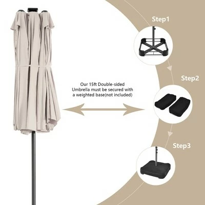 - Spacious Coverage Shading Space Provided: This 15 ft patio umbrella with double-sided design provides ex tra-large shelter for your family and friends to enjoy shady place. And you can place a set of outdoor furniture under the umbrella in both residential and commercial occasions, such as patio, backyard, market.