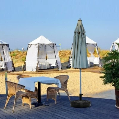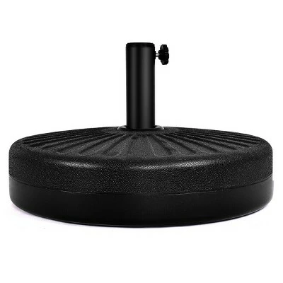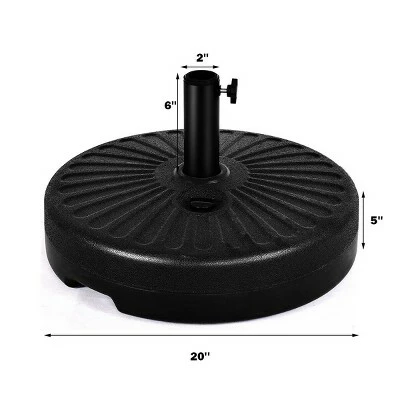 Our 20” round 23L water filled umbrella base is designed to keep your patio umbrella base stable and You do not need to worry any puff of wind which disturbing your summer relax in the shade. This water-filled umbrella base is made of durable HDPE material which is resistant to all weather elements and easy to maintain. What’s more, it is easy to operate, and You just need to fill the water base, and then the umbrella can be held securely and evenly in your garden, patio or other places! Specification: material: HDPE and steel. product size: 20.0”x11”(Dia xH). suit forDia38mm or Dia 48mm umbrella pole. 23L water needed to fill full the umbrella base. product weight: 4.8lbs. package include: 1 x water-filled umbrella base.