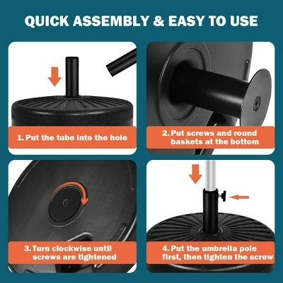 - 【Hand-turn Knob to Fix the Umbrella】The round base design of this product is big enough to hold the umbrella. This base includes a hand-turn knob for securing umbrella. Double lock design, one hole inside and one knob outside which could fix your umbrella tight.