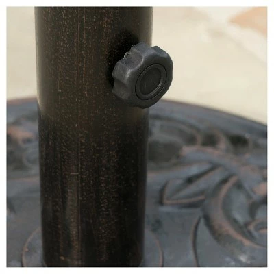 Sit outdoors comfortably in the shade with the help of this outdoor Christopher Knight Home Gobi Round Resin and Steel Umbrella Base. Safely secure your umbrella below your patio table or use it as a stand alone piece while decoratively using a stable support. Featuring a neutral finish that will blend into your existing outdoor decor, you will happily lounge in the cool shade flawlessly for hours with the help of this Christopher Knight Home Gobi Round Resin and Steel Umbrella Base.