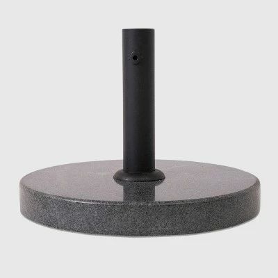Keep your beautiful patio umbrella secure with this Granite Umbrella Base from Threshold™. This round umbrella base fits most standard patio umbrellas and features a locking peg and adapters to provide a seamless fit, and the simple granite design fits easily with most existing outdoor decor. Plus, the rust- and weather-resistant design helps make it last season after season.