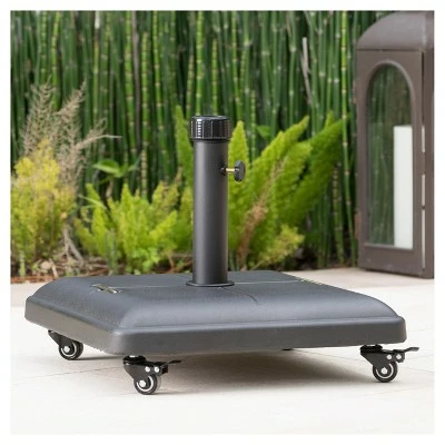 Sit outdoors comfortably in the shade with the help of this Christopher Knight Home Hayward 80 lb Square Steel Umbrella Base with Wheels. Safely secure your umbrella below your patio table or use it as a stand alone piece while decoratively using a stable support. Featuring a neutral finish that will blend into your existing outdoor decor, you will be happily lounging in the cool shade flawlessly for hours with the help of this Christopher Knight Home Hayward 80 lb Square Steel Umbrella Base with Wheels.