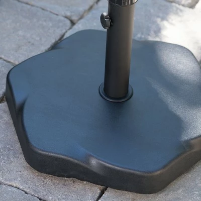 The Christopher Knight Home Hexagon 66 pound Patio Umbrella Base ensures that your umbrella will remain securely intact with style and practicality. Built out of solid steel and concrete, the 66 pound base can accommodate an umbrella as large as 12 feet. The base rod features a tightening knob to easily secure any sized umbrella pole. Place one under your dining set to provide a shady and relaxing outdoor dining experience with your favorite outdoor umbrella. This Christopher Knight Home Hexagon 66 pound Patio Umbrella Base is a must have for your backyard.