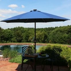 Sunnydaze Decor Sunnydaze Outdoor Rectangle Patio Market Umbrella with Solar LED Lights, Beige