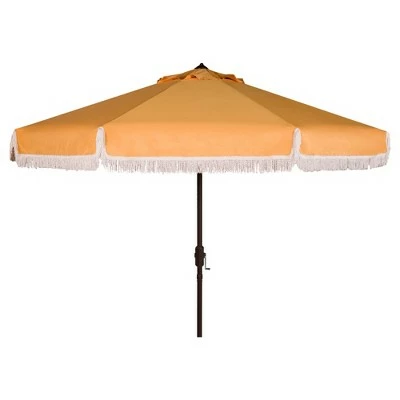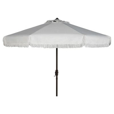 Summer afternoons at Mayfair’s exclusive private member’s club inspired this posh nine-foot crank umbrella. Its classic fabric is paired with fringe for a touch of whimsy and exotic style. Ideal for cocktails by the pool or afternoon delights. The Milan Auto Tilt Umbrella is available in a variety of colors to complement your personal tastes and decor. This item does require light assembly and is advised to be covered when not in use outdoors. Includes auto tilt and crank mechanism. UV protected.
