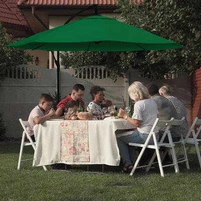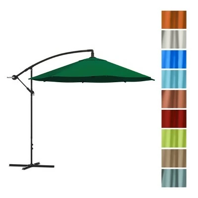 Hover with family and friends beneath the large protective canopy of this 10′ Offset Patio Umbrella by Nature Spring. This lovely hunter green patio umbrella offers effortless adjustment with a simple crank of a handle, so you can easily maneuver it to escape from the sun’s rays. The included cross-type base makes it easy to set the umbrella up and bring shade wherever it’s needed, whether poolside or in the garden.