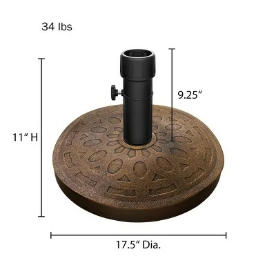 Add some charm and elegance to your outdoor living space with this attractive Nature Spring Decorative Umbrella Base. Made from resin, this weighted base provides a sturdy foundation for holding garden umbrellas securely to patio tables to prevent them from blowing over on windy days. The heavy-duty base is also great as a stand-alone base for holding single-pole tilt umbrellas to shade you from the sun by the pool.