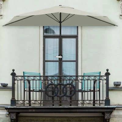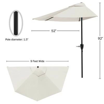 Expand your shaded outdoor space with this Nature Spring Half-Canopy Patio Umbrella. Its generous 9-foot width shields shade-seekers during daylight hours while also providing a barrier from light rain, fly-by bird droppings, and falling tree debris. The half-canopy design provides ample coverage in irregular areas, such as against tall fences or outdoor bars, along the sides of a home, on balconies, or in backyards with limited flat ground.