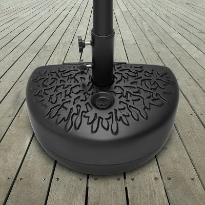 Set up shade wherever it’s needed with this Nature Spring Half Moon Patio Umbrella Base. The weather-resistant stand has a semicircle shape that fits flat against buildings to maximize space and a black textured finish to coordinate with all canopy colors. Bolstered by a steel shaft with two tightening knobs, this plastic base adjusts easily to keep poles in place. Use the hole and stopper to add up to 34 pounds of sand for stability.