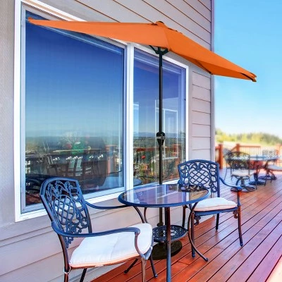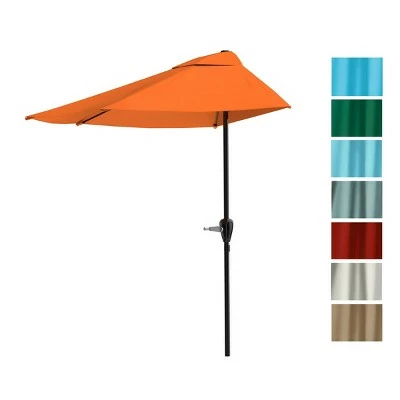 Stay cool in the summer with this Nature Spring 9′ Half-Round Patio Umbrella, suitable for backyards, patios, small balconies, decks, and porches. This umbrella provides cover from sunshine and rain, and it opens and closes in seconds with an easy-to-use hand crank. Made with durable steel pipes for sturdy support, this brightly colored umbrella is a functional and attractive outdoor accessory during picnics and pool parties.