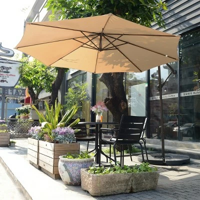 Embrace outdoor living in the shade with this Nature Spring Offset Swivel Patio Umbrella. The several feet of height from the ground ensures that seven to nine individuals can comfortably sit or stand underneath, and the canopy’s structure offers substantial coverage space underneath for a covered table and chairs. Its waterproof polyester fabric also works to keep you dry in mild inclement weather.
