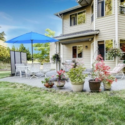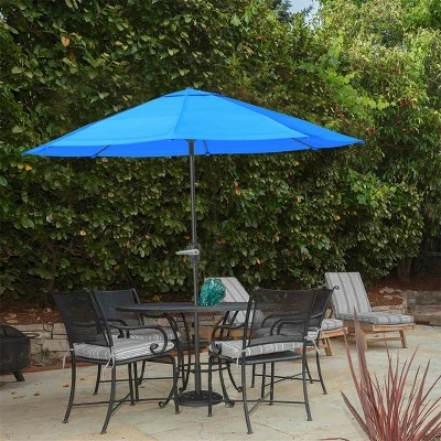Pop open this 9-foot Nature Spring Patio Umbrella when you need escape from the hot sun. This summertime essential comes in a brilliant blue to accentuate your outdoor decor and boasts a vented canopy for airflow and comfort. Made with eight supporting steel ribs and heavy duty fabric, this umbrella is built for durability and long-lasting enjoyment.