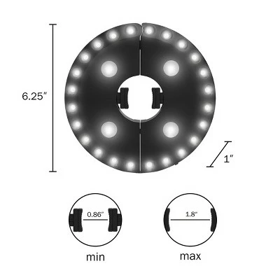 Illuminate your patio with this Nature Spring Patio Umbrella Light. The light works with umbrella poles that are 0.86-1.8″ in diameter, and its cordless design allows for easy setup. In addition to patio umbrellas, the light can be strung from camper awnings and hung inside your tent during camping trips for versatile use.