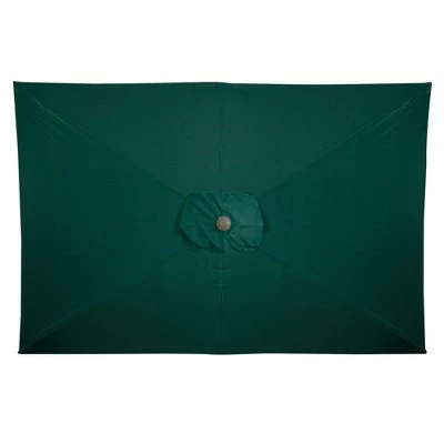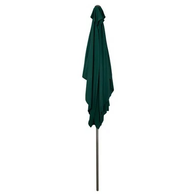 Provides ideal coverage for entertaining guests at your outdoor dinner party. Our large rectangular patio umbrella can accommodate a four to six person dining set, up to 62 inches in diameter. Features a standard hand crank mechanism that allows for ease of use, as well as aluminum and steel ribs that provide excellent canopy support. Features:Umbrella shape: rectangle Canopy color: hunter greenFrame and pole color: brown Diameter of open umbrella: 10′ long x 6.5′ wideHeight: 8.5′ Pole diameter: 1.5″ (38mm) Lift: hand crank 6 ribs Material(s): 160 gram polyester canopy/powder coated aluminum pole/steel ribs Note: Umbrella only, the base is not included
