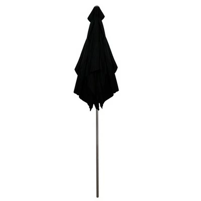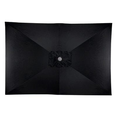 Provides ideal coverage for entertaining guests at your outdoor dinner party. Our large rectangular patio umbrella can accommodate a four to six person dining set, up to 62 inches in diameter. Features a standard hand crank mechanism that allows for ease of use, as well as aluminum and steel ribs that provide excellent canopy support. Features:Umbrella shape: rectangle Canopy color: blackFrame and pole color: brown Diameter of open umbrella: 10′ long x 6.5′ wideHeight: 8.5′ Pole diameter: 1.5″ (38mm) Lift: hand crank 6 ribs Material(s): 160 gram polyester canopy/powder coated aluminum pole/steel ribs Note: Umbrella only, the base is not included