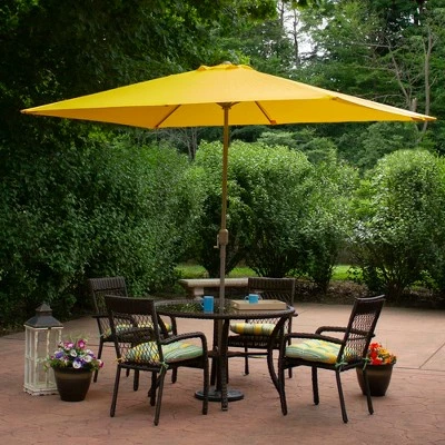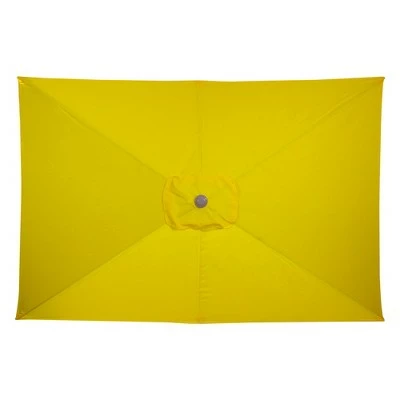 Provides ideal coverage for entertaining guests at your outdoor dinner party. Our large rectangular patio umbrella can accommodate a four to six person dining set, up to 62 inches in diameter. Features a standard hand crank mechanism that allows for ease of use, as well as aluminum and steel ribs that provide excellent canopy support. Features:Umbrella shape: rectangle Canopy color: yellowFrame and pole color: brown Diameter of open umbrella: 10′ long x 6.5′ wideHeight: 8.5′ Pole diameter: 1.5″ (38mm) Lift: hand crank 6 ribs Material(s): 160 gram polyester canopy/powder coated aluminum pole/steel ribs Note: Umbrella only, the base is not included