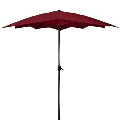 Stay away from the sun’s hotness with this richly colored patio lotus umbrella. Comprising a sturdy, powder-coated aluminum frame with fiberglass ribs, this tall, modern-style umbrella is built to last a lifetime. The crank opening enables easy use and offers perfect coverage for a table and chairs.Product Features:Umbrella shape: lotus Canopy color: burgundyFrame and pole color: brownUnique “lotus” shape is achieved by layering one 5-point star shape on another for a total of 10 points aroundOne layer is attached to the other with color-coordinated ribbonDiameter of open umbrella: 8.85’Height: 8.2’Pole diameter: 1.5″ (38mm) Lift: hand crank10 ribsMaterial(s): 160 gram polyester canopy/powder-coated aluminum pole/fiberglass ribsNote: Umbrella only, base is not included