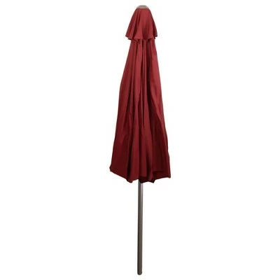 Stay shaded and cool this summer with our moderately sized market umbrella. Ideal for covering a 48-inch or four-person dining set. Features a sturdy, powder-coated aluminum frame with steel ribs, built to last a lifetime. The crank opening and push-button tilt mechanism allows for ease of use. Features:Umbrella shape: octagon Canopy color: burgundyFrame and pole color: brownDiameter of open umbrella: 9′ Height: 8′ Pole diameter: 1.5″ (38mm) Lift: hand crank Tilt: push-button8 ribs Material(s): 160 gram polyester canopy/powder-coated aluminum pole/steel ribs Note: Umbrella only, base is not included