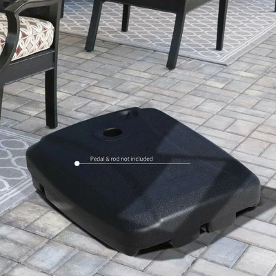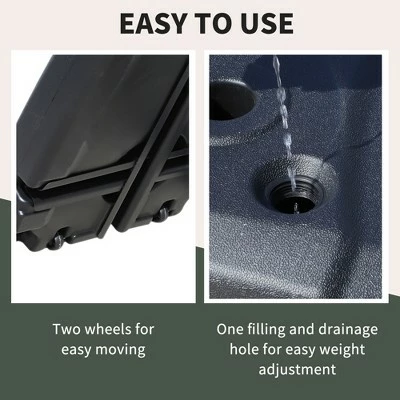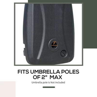 If you have a large umbrella for your deck, patio, or outdoor seating area at your home, you need a strong, sturdy base to keep in anchored. This sturdy base from Outsunny is just what you’e been looking for! Made from durable and weather-resistant HDPE material, this umbrella base sits over your umbrella cross base frame to keep it secure and stable on the ground. Two wheels attached to the underside of the base make this item easy to move around your patio or deck. Featuring an easy to fill spout located on the top of the base that can be filled with sand, water, or a mixture of both to achieve the weight you need to anchor your umbrella, as well as a side spout for quick draining; (NOTE: Umbrella post is not included, this is only the base for the post)