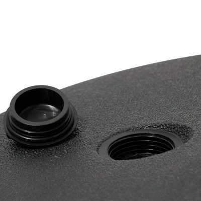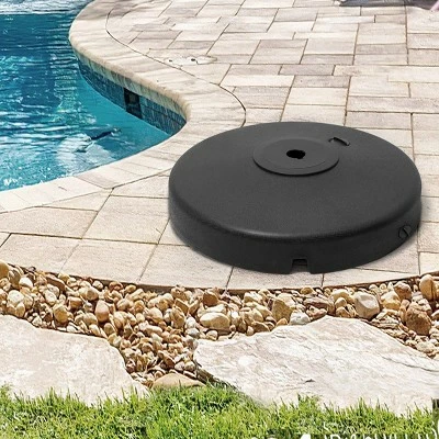 This 100lbs offset umbrella base will be perfect for your patio umbrella. You can fill it with water or sand, maximum capacity is 45 liters of water or 99.2 pounds of sand. It can match well with the cross base of umbrella and support your Offset/Cantilever umbrella, even in a windy climate, your umbrella is not easy to tip over. Features durable, heavy, with classic round design, it will be a nice choice for you to hold your umbrella in your patio, garden, yard, and poolside, even in commercial places.