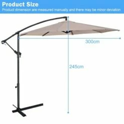 Costway 10′ Hanging Umbrella Patio Sun Shade Offset Outdoor Market W/t Cross Base Beige