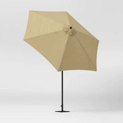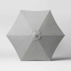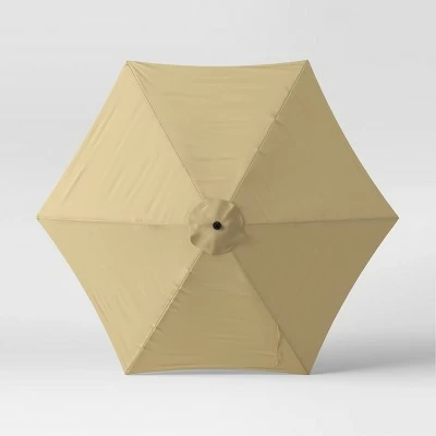 Enjoy being outdoors on a sunny day under the shade of this Round Patio Umbrella from Room Essentials™. This outdoor umbrella makes a must-have addition to your patio, deck, backyard or garden space. Made of UV-resistant fabric for outdoor use, it features a solid color that coordinates with any decor. The circular canopy helps you stay shaded from the sun, while a metal frame offers a sleek foundation. Plus, it’s equipped with a tilt function to position the umbrella at your desired angle, along with a built-in crank on the pole that makes it easy to open and close the umbrella.