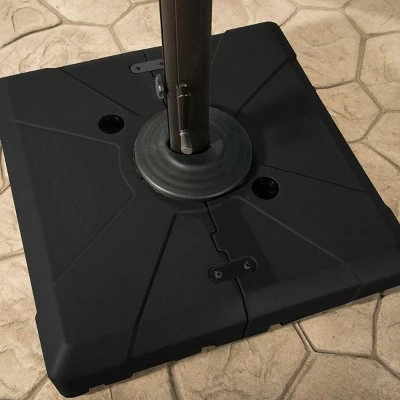 - 360 degree swivel base uses 200+ lbs of gravel or sand mixture to keep the umbrella in place. Molded ABS base cover