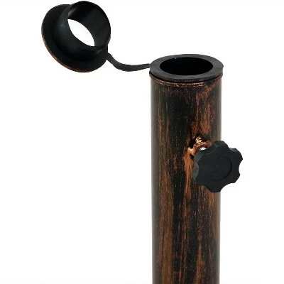 Ensure the patio umbrella stays in place and add a decorative touch to any outdoor living space with this patio umbrella base. This outdoor accessory is constructed of strong and durable cast iron that is incredibly weather resistant. The heavier properties of this base will keep the umbrella upright and ensure that it will not tip over, even in windy conditions. Featuring a thumb screw, this base can accommodate umbrellas with 1.25- to 2-inch diameter poles. It also has an attractive Celtic knot design that will enhance any patio or backyard.